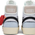 The Virgil Abloh Nike OFF-WHITE Blazer Mid features a white leather upper with an oversized black Nike Swoosh descending to the midsole. The four lace options (white. black. neon orange and neon green) come with Abloh’s own self-referential brand “SHOELACES”. Released in September 2017. this sneaker is a member of the initial REVEALING set of five pairs from the ‘The Ten’ Off-White x Nike collection that included reconstructed designs for the Air Jordan 1. Air Max 90. Nike Air Presto. and Nike. Air VaporMax.